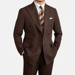 Eleve su vestuario formal con un conjunto de dos piezas atemporal para hombre. La chaqueta de doble botonadura con solapa de pico, junto a los pantalones a medida, ofrece una silueta estructurada y una elegancia serena que perdura.