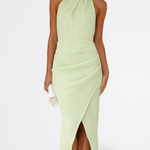 Paula es el vestido que transforma lo sencillo en inolvidable. Su escote halter, textura tejida y falda cruzada crean una silueta moderna, femenina y lista para impresionar en cualquier ocasión, desde una cena al aire libre hasta un evento especial.