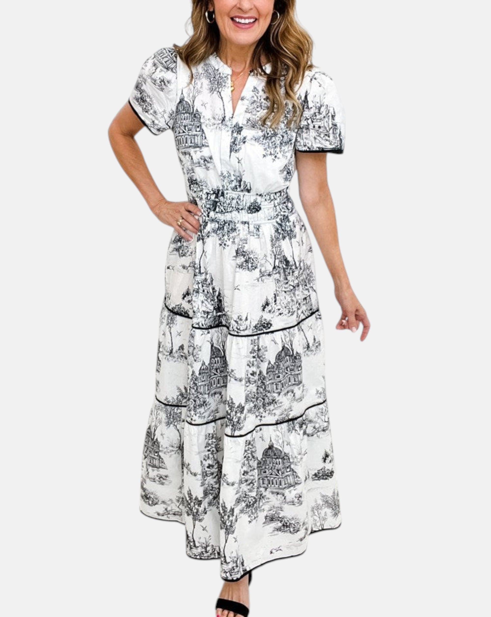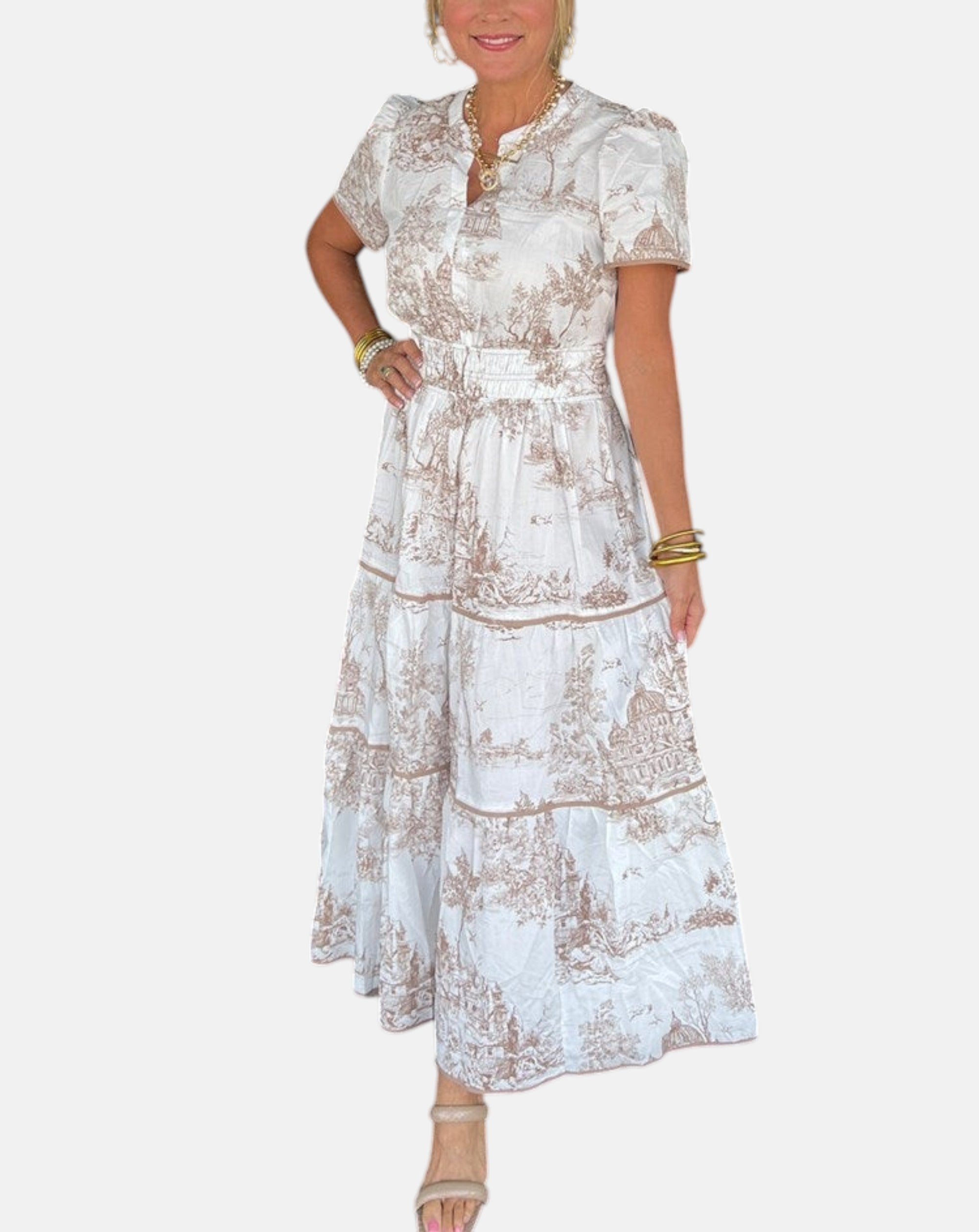 ALEJANDRA | VESTIDO LARGO CLÁSICO CON ESTAMPADO TOILE