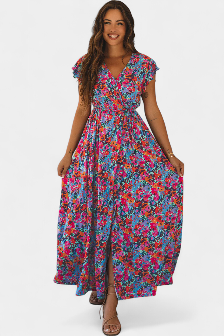 Patricia | Vestido Cruzado Largo con Estampado Floral